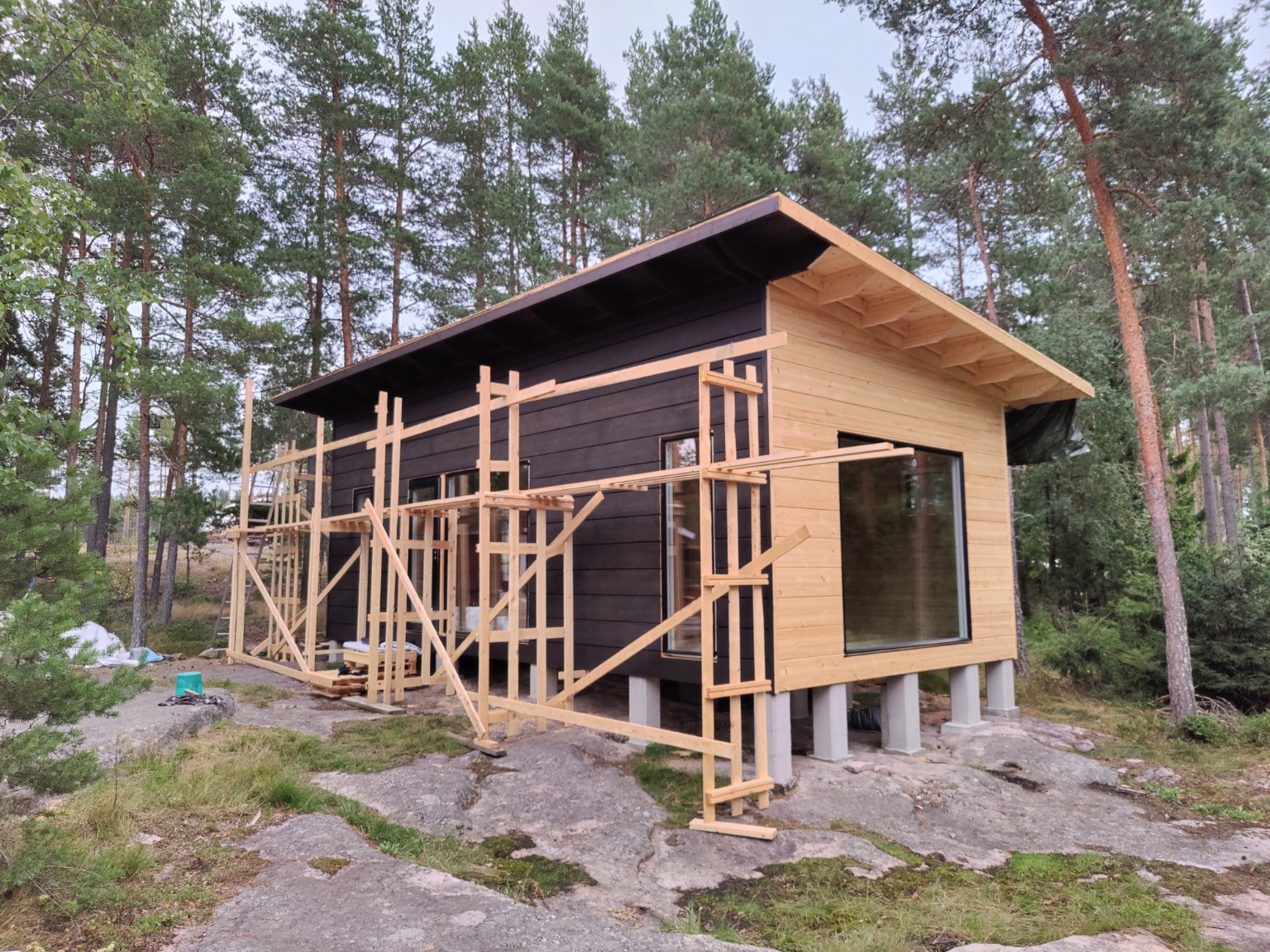 Päätös oli helppo. Uuden talousrakennuksen ulkoseiniin valitsimme saman värisävyn ja saman tuotteen kuin huvilaan viisi vuotta sitten.