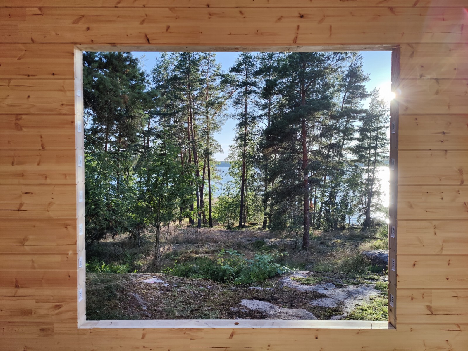 Rungon pystyttämisen (ks. edellinen artikkeli) jälkeen seuraava kriittinen vaihe oli rakennelman saaminen sateelta suojaan. Pienehkön hirsirakennelmamme kaikki muut työt oli periaatteessa mahdollista tehdä yksin tai max kahdestaan, mutta ikkunoiden ja oven asennus vaati lisävoimia. Niinpä yhtenä alkukesän viikonloppuna järjestimme talkoot tätä varten.
