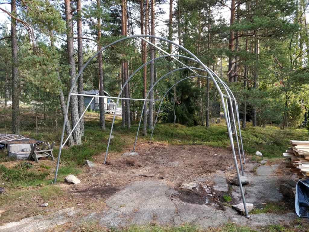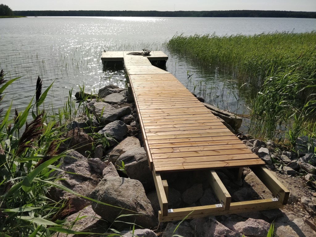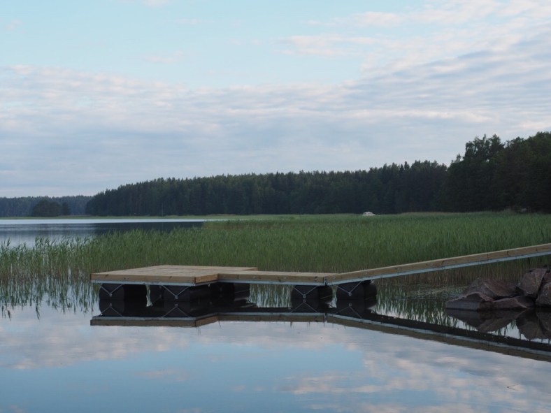 Rantaterassin ja siihen integroidun laiturin alkuvaiheista on tullut kirjoitettua enemmänkin. Tänä kesänä olemme päässeet nauttimaan tekemisen lisäksi myös lopputuloksesta. Iltapäiväkahvit ja auringonlaskujen ihailu saunomisen yhteydessä ovat olleet mahtavia etenkin nyt, kun Mari hankki terdelle sohvaryhmän ym. asiaan kuuluvat varusteet.