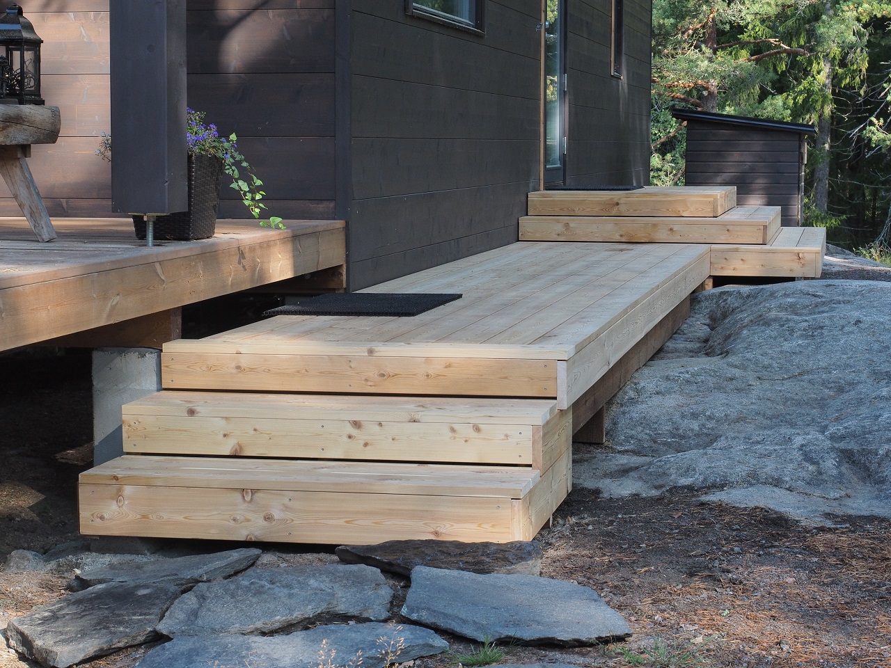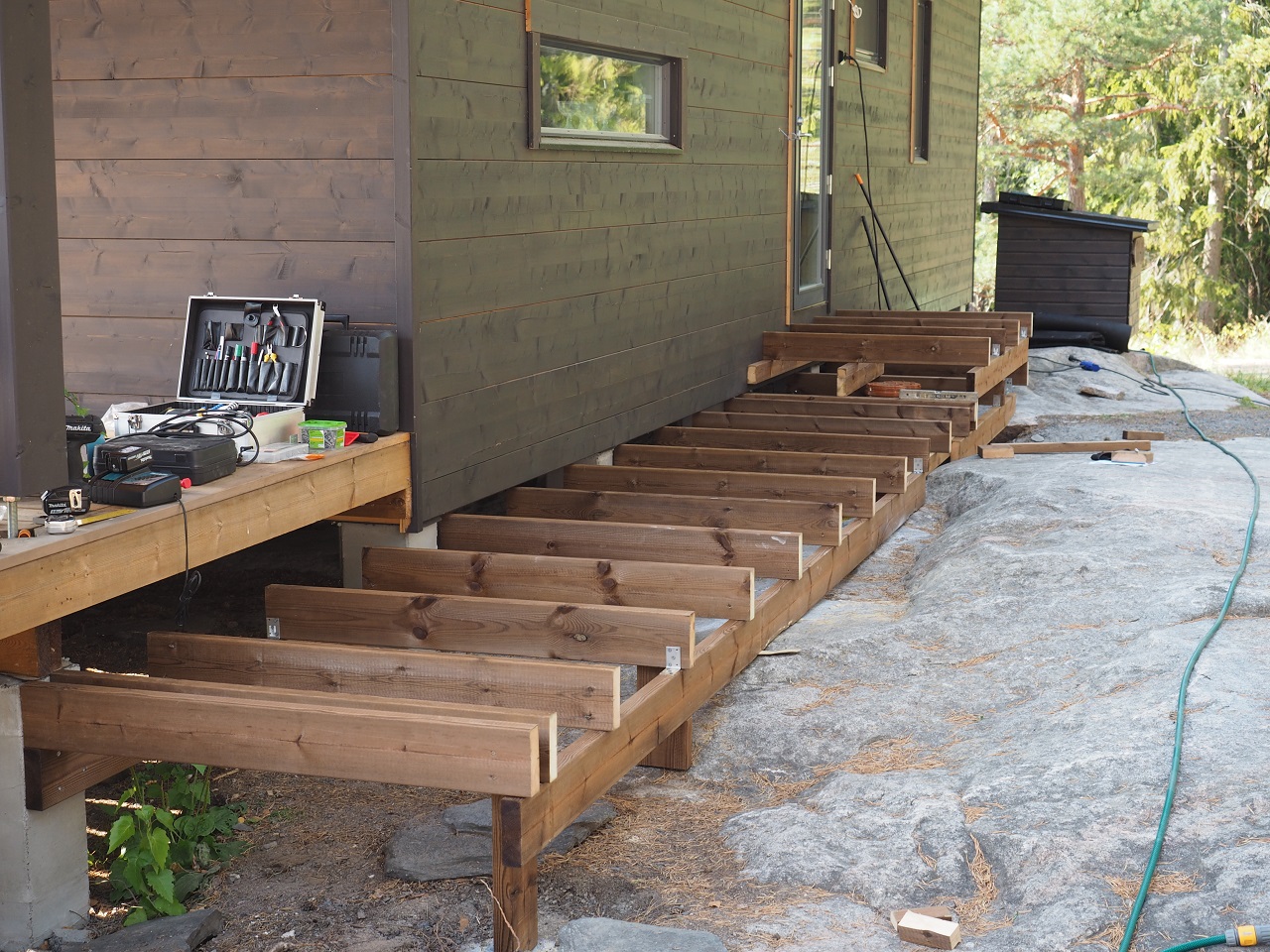Pitkään pohditut ja odotetut terassin kaiteet ovat nyt paikoillaan!