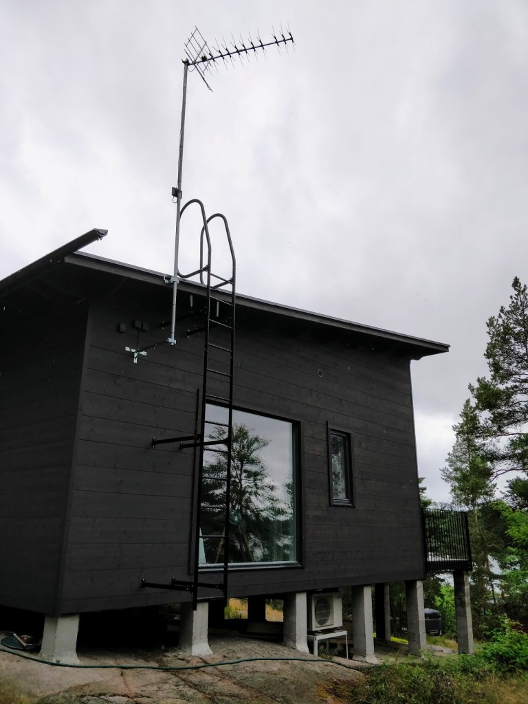 Paikallinen metalliyrittäjä Tenholasta (Lundmet AB/Kjell Lundsten) teki juuri niin hyvää työtä kuin vinkin antanut maanviljelijänaapurimme oli kehunut. Työnjälki on oivallista ja kaide on tukevasti asennettu. Myös toimitus oli lähes ajallaan. Rakennushommissa siedettävä viikon myöhästyminen oli vielä ihan ok. Selitys oli maalaamon viiveet – ainahan syylliset löytyvät jostain muualta. 🙂 Tältä mustat teräskaiteemme nyt sitten näyttävät: