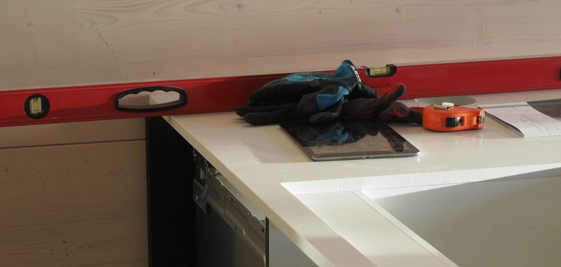 Asensimme paneelit ja heti näkyi, että jotain oli asialle pakko tehdä. Maalasimme paneelit vielä kertaalleen Teknoksen Futura Aqua 20 puolihimmeällä kalustemaalilla, sävy NCS-S0502-Y. Ei lopputuloksesta vieläkään aivan moitteeton tullut, mutta siedettävä kuitenkin.