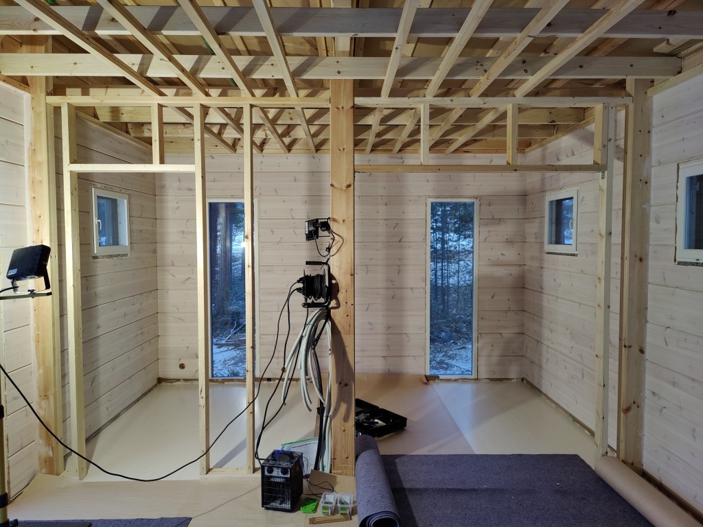 Seuraavat työvaiheet vaativatkin jo apuvoimia – paino erityisesti sanan jälkimmäisellä osalla. Näistä lisää seuraavassa jaksossa, jossa paneudumme mm. kattorakenteisiin, kadonneiden ikkunoiden arvoitukseen sekä lopulta ikkunoiden ja oven asennukseen.